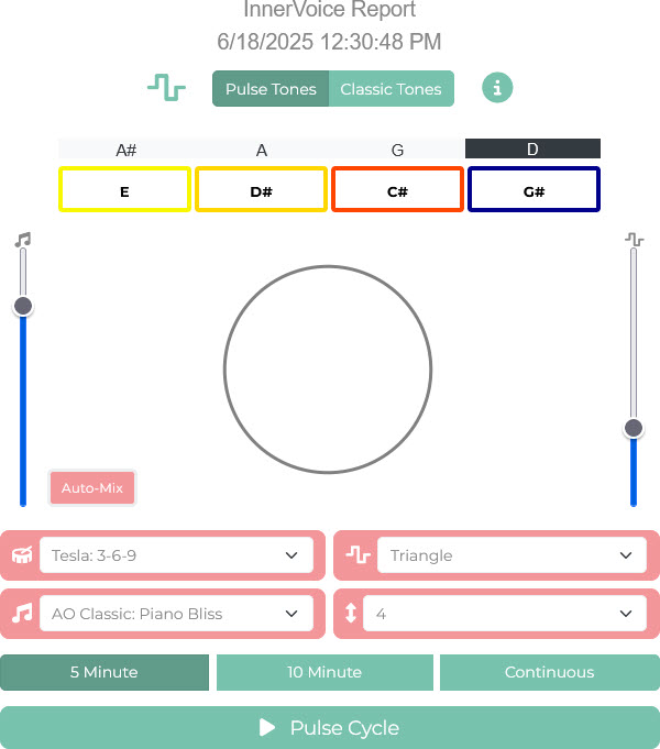 The recipient can use the various controls to listen to the scanned tones (e.g., E, D#, C#, and G#) without using the MP3 files in the AO Inner-Voice Scan Audio email.