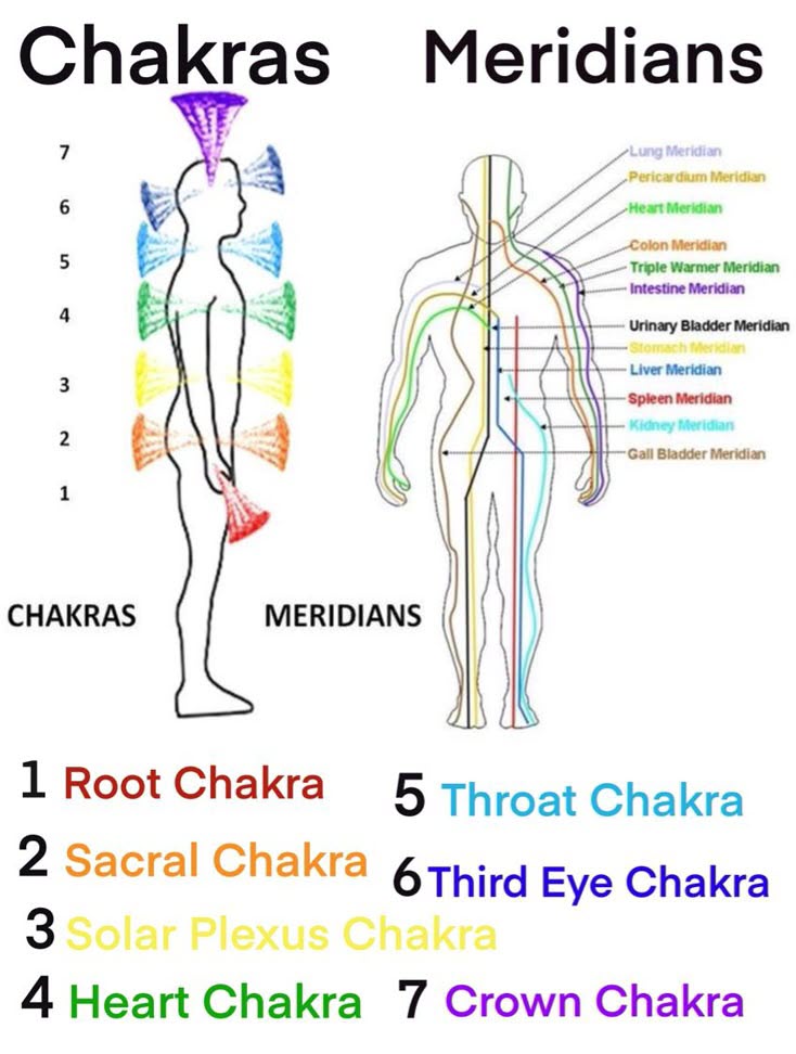 Chakras and meridians are concepts from different spiritual and healing traditions, primarily rooted in Indian and Chinese systems, respectively, but they share some conceptual overlap in how they describe energy flow in the body. Here’s a concise explanation of their relationship: