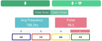 When you perform the Pulse Tones scan, the Average Frequency and Pulse frequency are not displayed on the page. However, by clicking the waveform icon [1], the Inner Voice scan page displays the Pulse Tones Information.