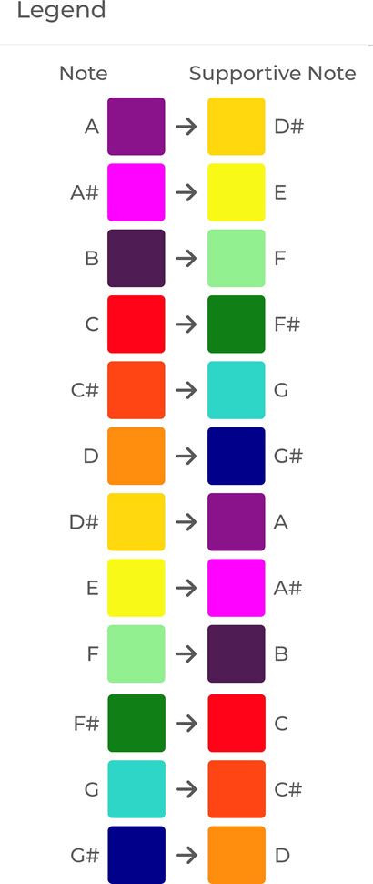 Each note (left) that is out of range, that is the tone being suppressed, has a corresponding supportive note (right) that will balance the suppressed tone.