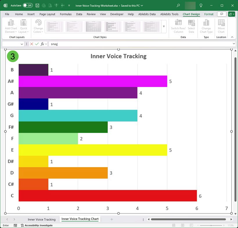 - View the updated results on the Inner Voice Tracking Chart sheet. (Figure 3)